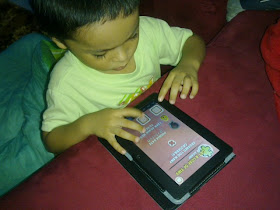 I bought an Ipad for apip..yang murah punyer..taiwan mariiiii around 345 hengget....tapi tak pernah bagi dia main lebih sejam...takut sangat dia addicted..setakat hari ni, ketaksuban apip main ipad ni masih boleh dikawal..takdelah jerit hentak2 kaki hempas2 barang sebab nak ipad nih..dia tak pernah mintak pon nak main..punca yang buat dia nakkan ipad ni pon sebab nampak kezen main ipad lalu teringin men'touch' di skrin kezen tompang main  tapi budak2 kan..of koz lah kedekuts...muahaha...